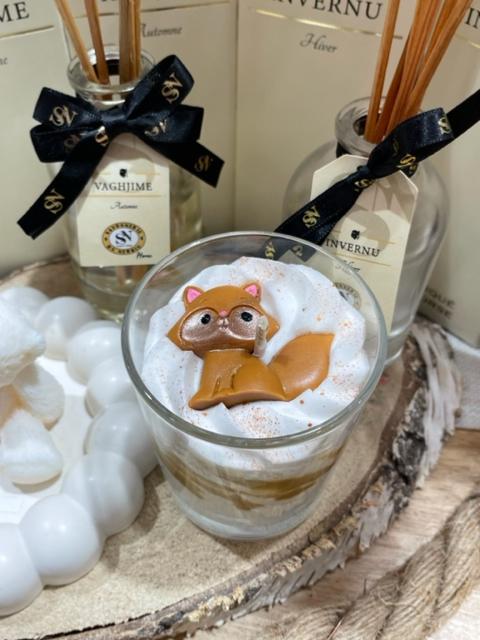 Entrez dans un univers de gourmandise et de féérie avec la bougie gourmande caramel en cire végétale de chez Les Fées Mères et son renard en 3D !
