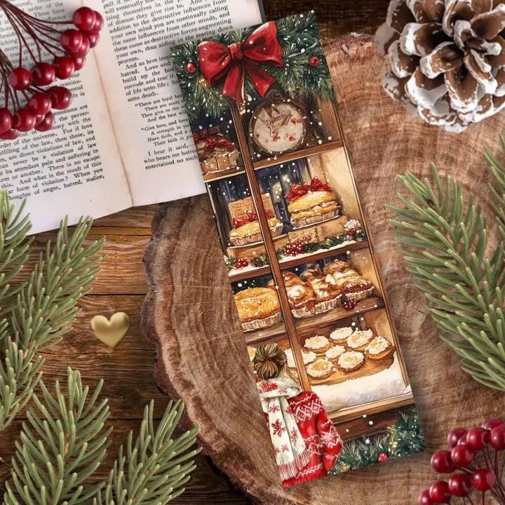 Découvrez ce marque-page en papier pelliculé épais, orné d'une illustration chaleureuse qui évoque l'hiver et ses plaisirs cosy et féériques.