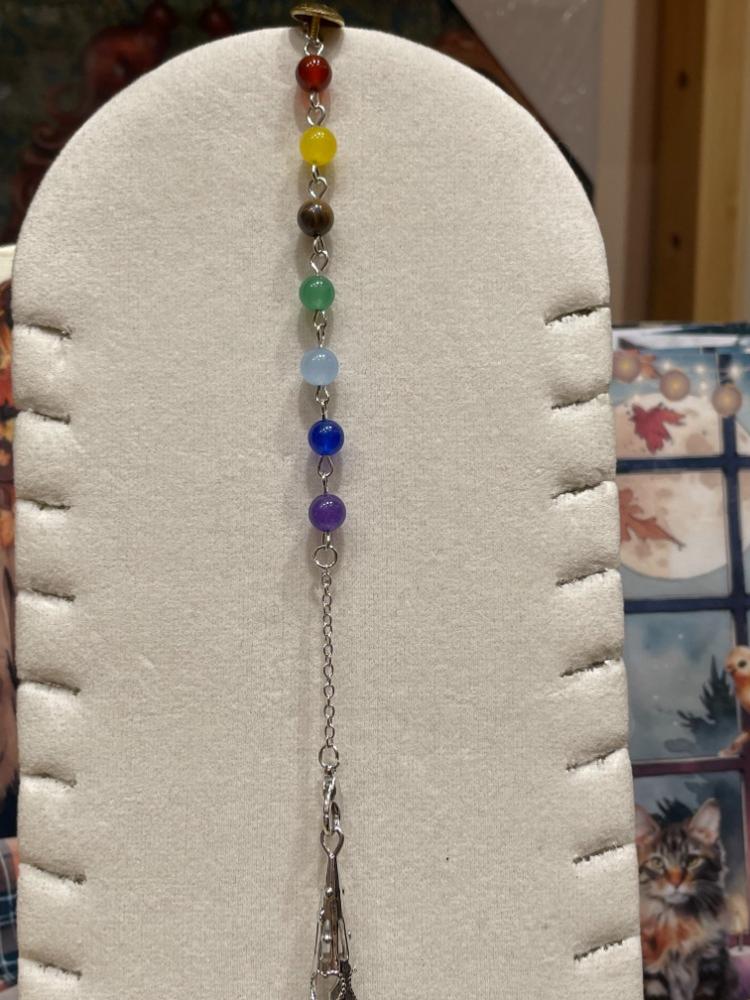 Le pendule avec des chakras est un outil de radiesthésie utilisé pour équilibrer les énergies du corps et de l'esprit.