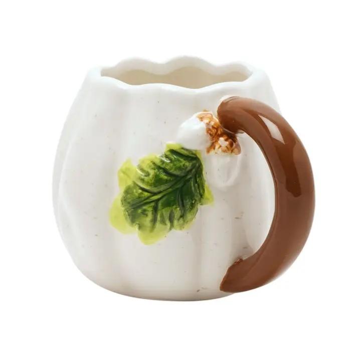 Craquez pour la tasse citrouille blanche avec feuilles.