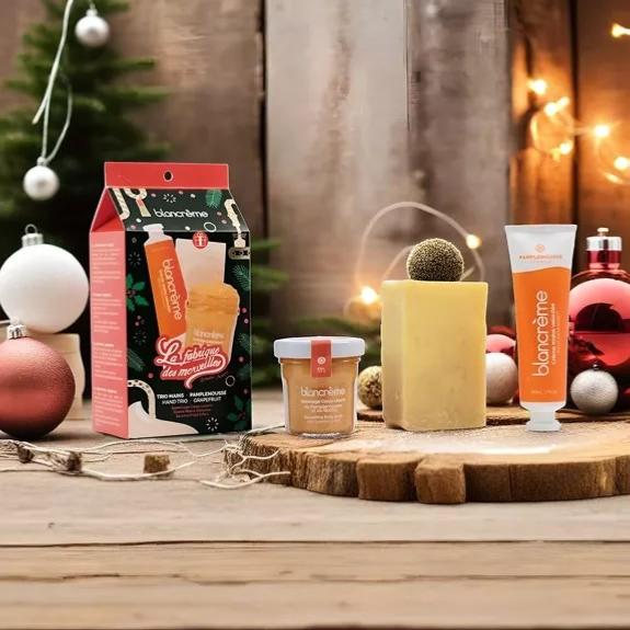 -Une crème pour les mains Pamplemousse qui nourrit, protège et laisse les mains souples et douces. Un coffret vitaminé et sensoriel, préparé par les lutins pour transformer chaque geste en une véritable pause de fraîcheur.